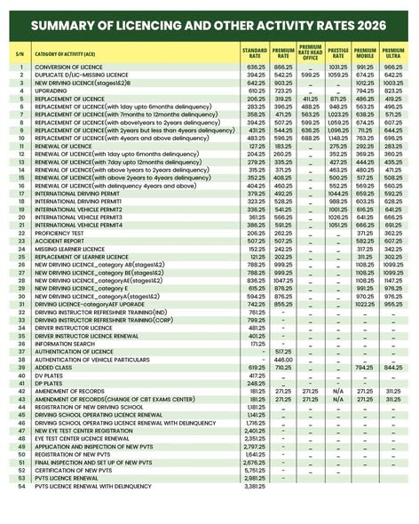 Members of the public have been advised to take note of the approved rates and transact business only at DVLA offices and authorised centres.